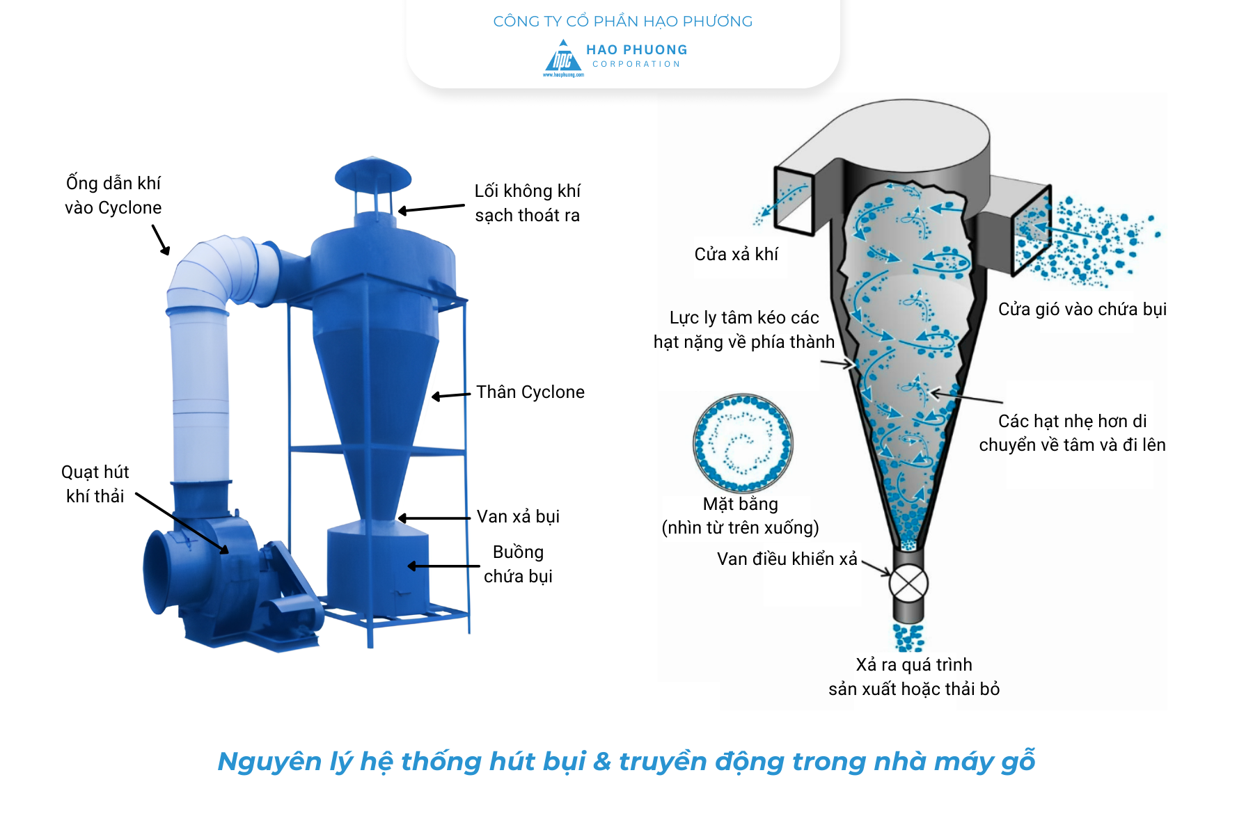 NGUYÊN LÝ HỆ THỐNG HÚT BỤI VÀ TRUYỀN ĐỘNG TRONG NHÀ MÁY GỖ