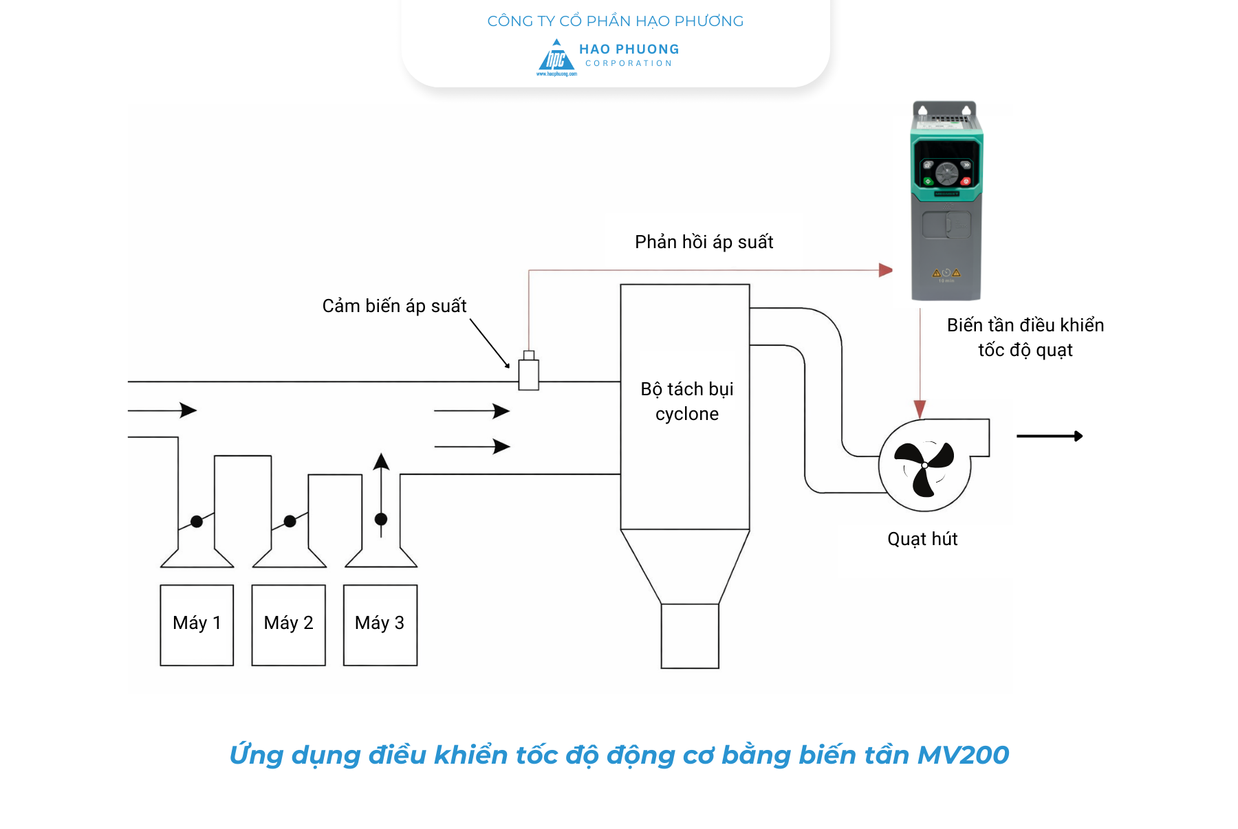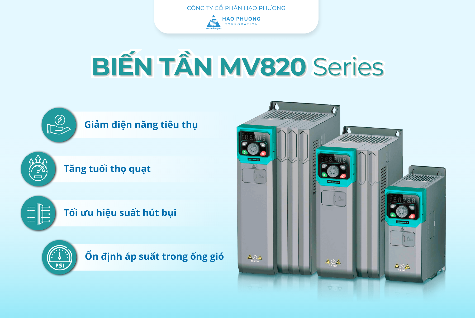 - MV820 điều khiển tốc độ quạt hút chính theo tải thực tế.